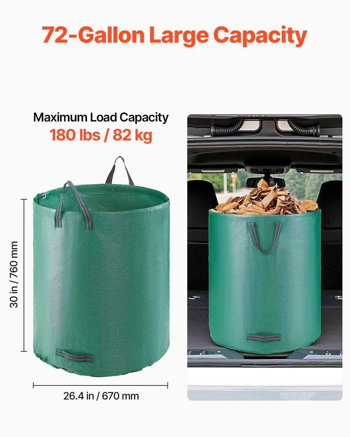 1.Large Capacity Design: This 72-gallon reusable yard waste bag features a high load capacity of 180 lbs / 82 kg, making it easy to collect trimmed branches, fallen leaves, and other garden waste. Ideal for both routine and seasonal cleanups.